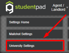 A drop down will appear with several clickable options available, go to the far-left and click on University Settings: